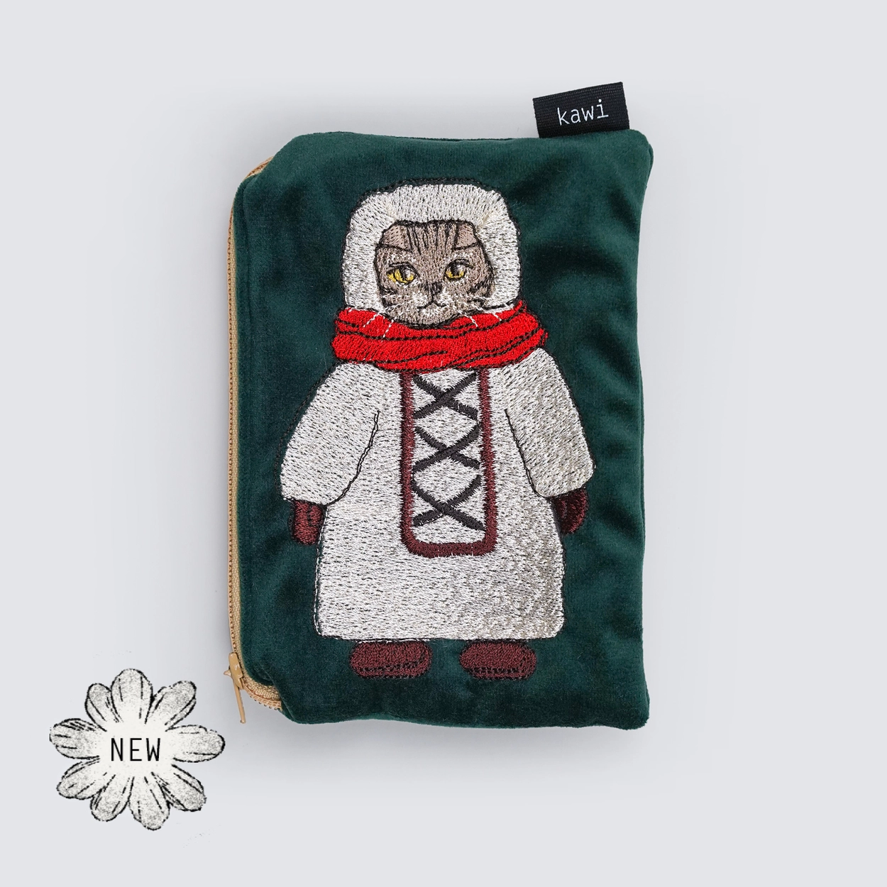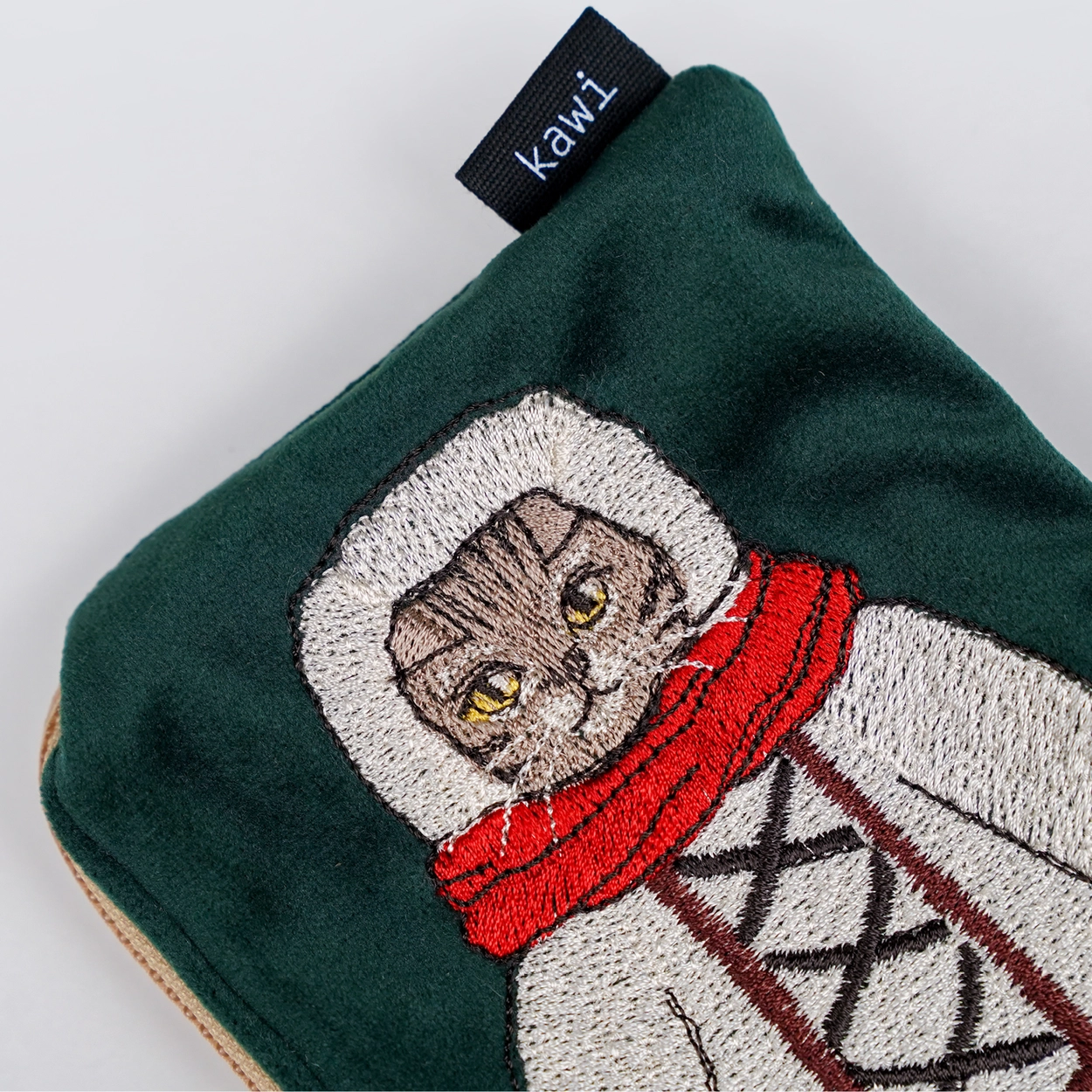 Velvet Pouch : Red Scarf Kitten