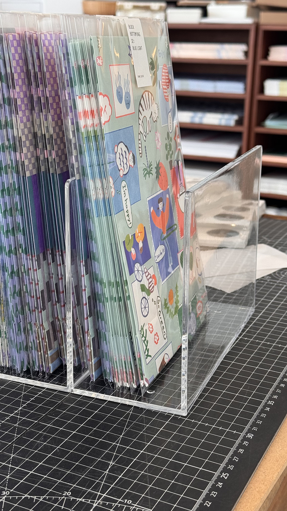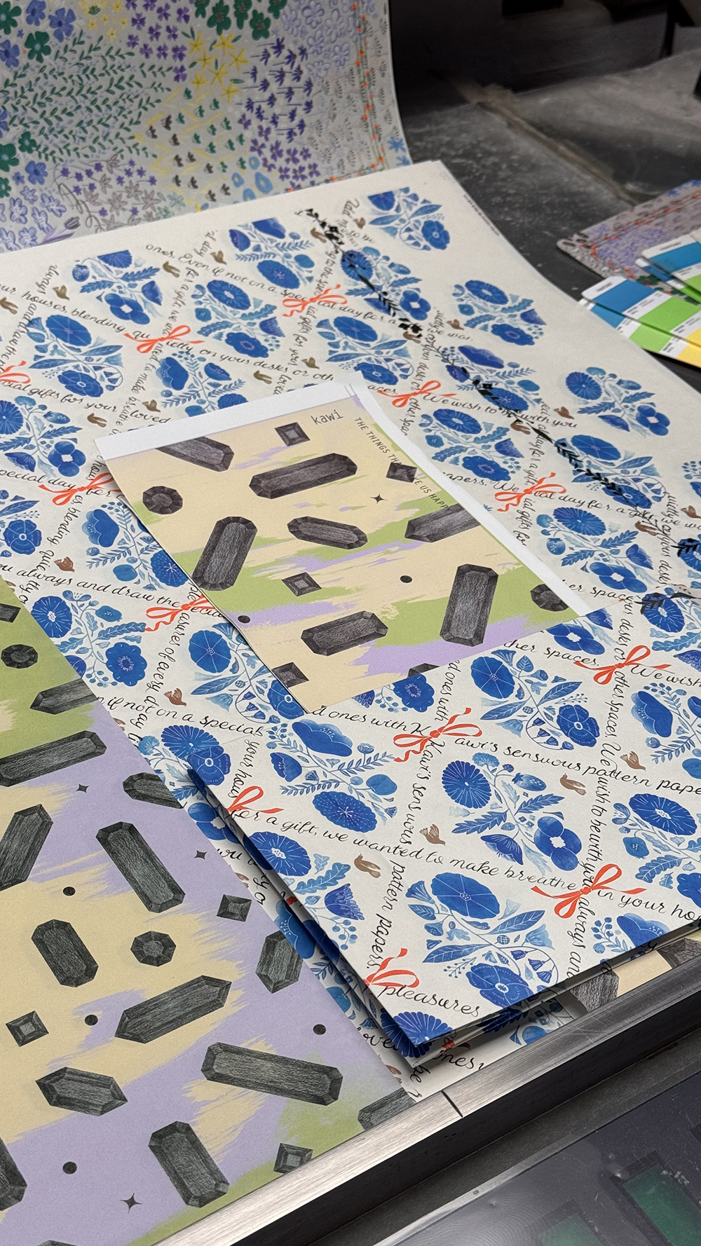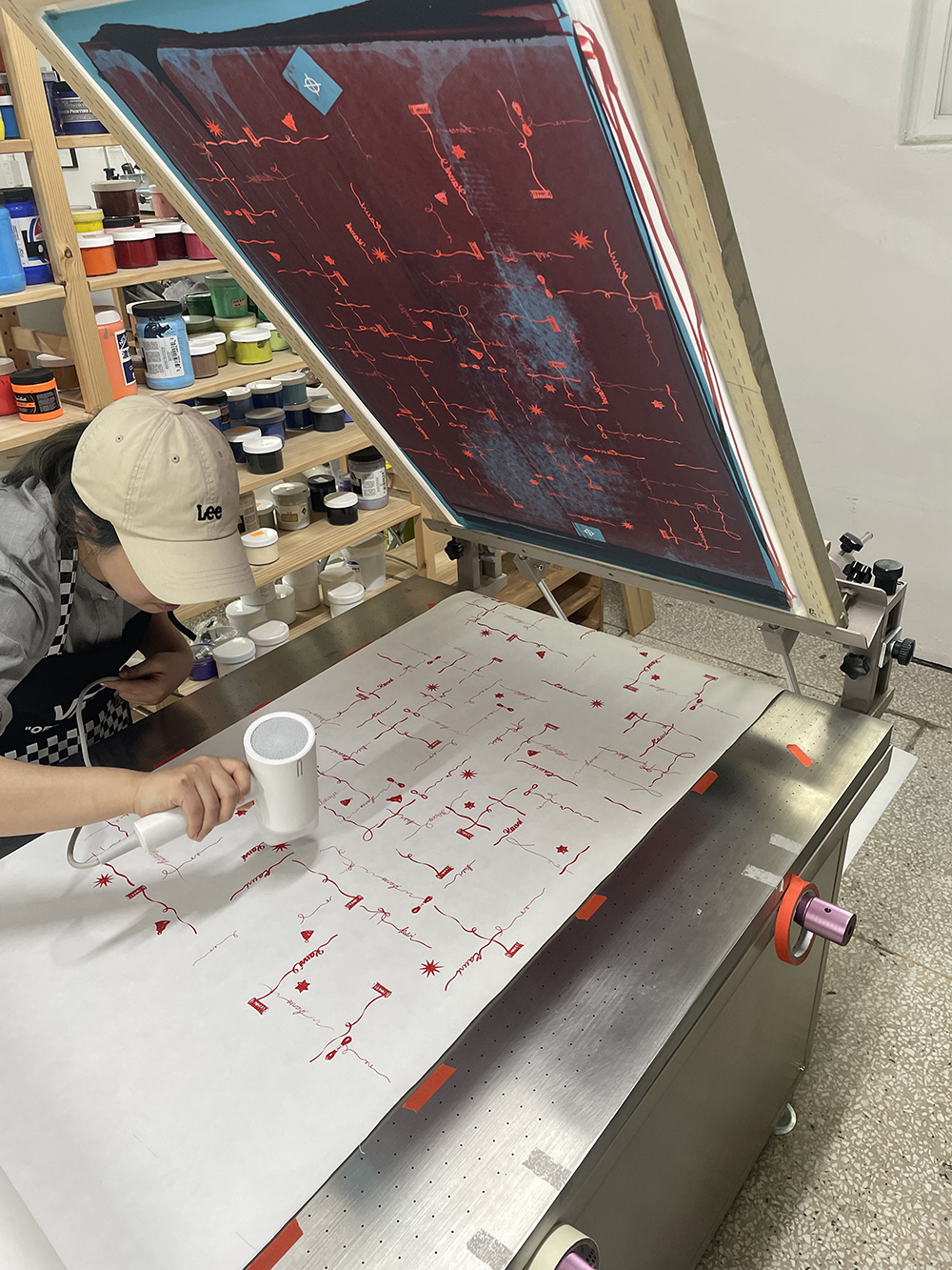 저희 패턴지를 길게 롤로 만들게 되면 어떤 느낌일까 싶어서 실크스크린으로 직접 찍어냈습니다.