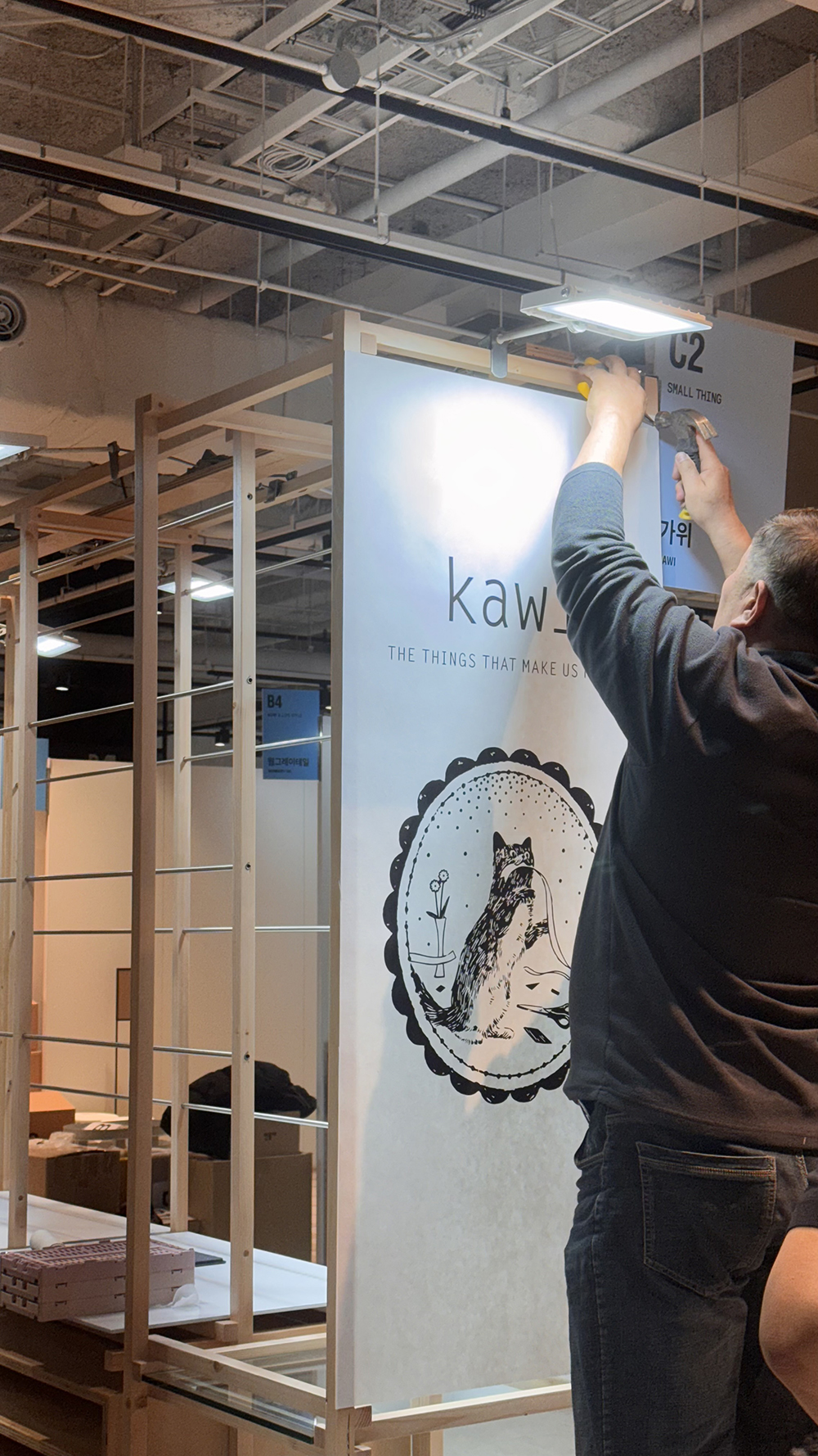 이때부턴 뭐가 뭔지 모르겠습니다. 그냥 날짜가 다가왔고 행사 시작 몇 일 전부터 시공을 시작했어요.