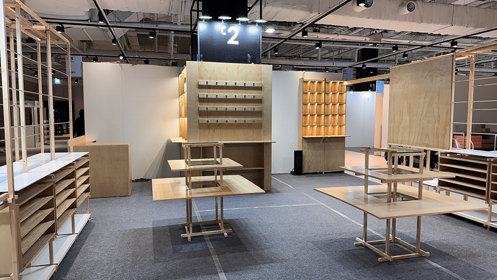 저희는 공간에 대한 기획해 본적이 없어요. 그냥 저희가 쓰는 사무실정도...? 지류라는 한정된 평평한 공간을 다루다 제품과 사람들을 위한 공간을 다룬다는건 저희에겐 미션같은 일이었어요. 이때부터 코엑스 행사가서 바닥이나 자제를 유심히 보기 시작합니다. 위에 사진은 카펫을 까는데 연결을 무조건 테이프로 해야합니다. 코엑스 규정이에요. 아니면 개인이 큰 카펫으로 깔아도 되지만 무언가 하나 추가할때마다 '돈'이 드는 일이라....