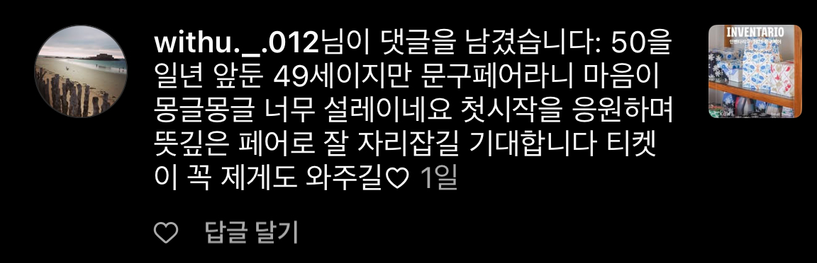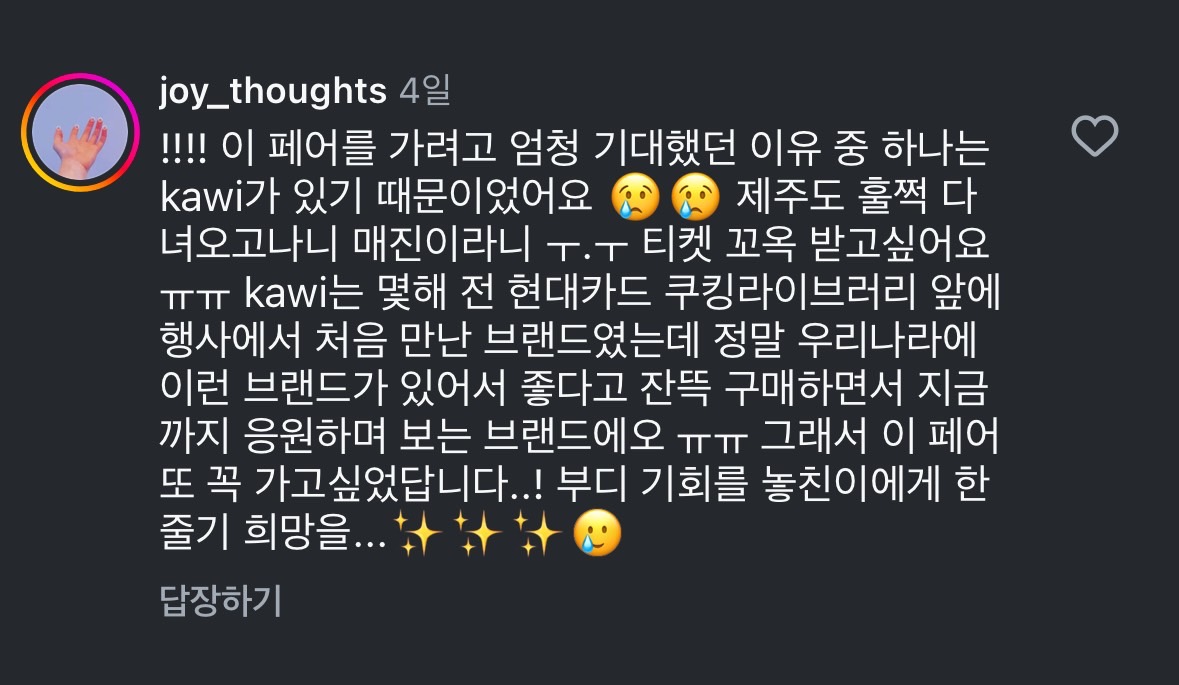 초대권 행사를 처음해봐서... 누가 작성해 주실까 했는데 다들 적극적으로 참여해주셨어요!